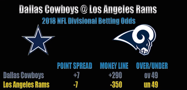 Dallas Cowboys +7 +290 ov 49 Los Angeles Rams -7 -350 un 49