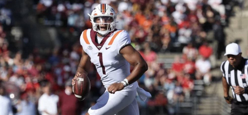 Kyron Drones passing yards for Virginia Tech were listed at Over/Under 218.5.