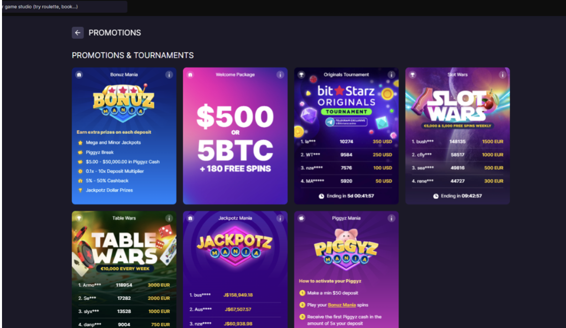 - VIP Starz Club: Personal manager, unrestricted instant cashouts, custom bonuses