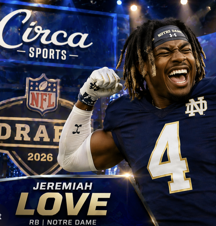 Jeremiah Love NFL Draft with Circa Sports in backdrop