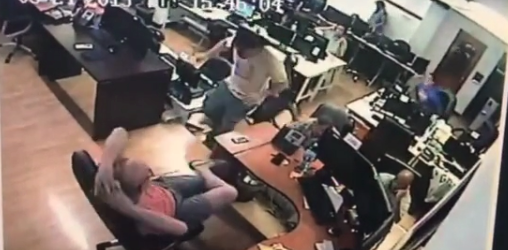 Gambling911.com has obtained this shocking video of a Pay Per Head shop employee being hit over the head with a chair while the boss (pictured sitting in chair at bottom right) does nothing.