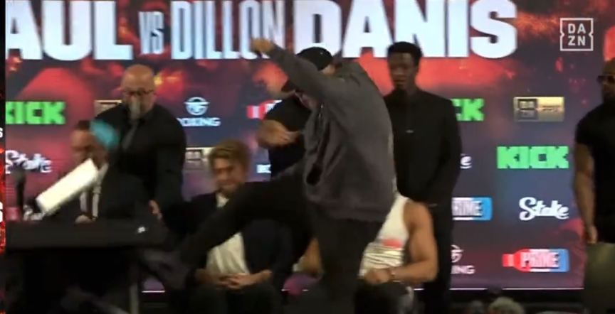 Logan Paul and Mike Perry came face to face after Tuesday’s chaotic press conference, as Perry will serve as the backup in case Dillon Danis withdraws from the bout.