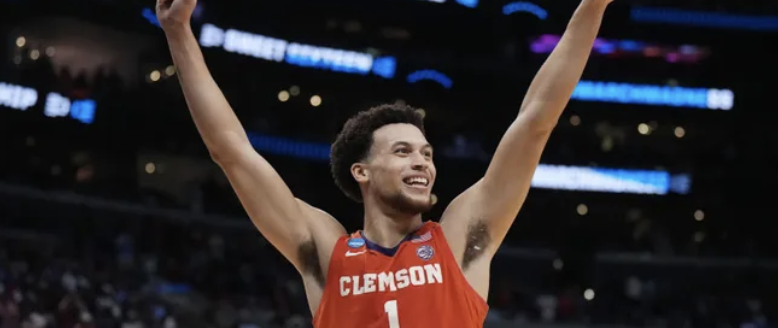 Chase Hunter of Clemson had an over/under of 15.5 total scoring for his team's NCAA tournament game against Mcneese. He is averaging 16.4 points per game.